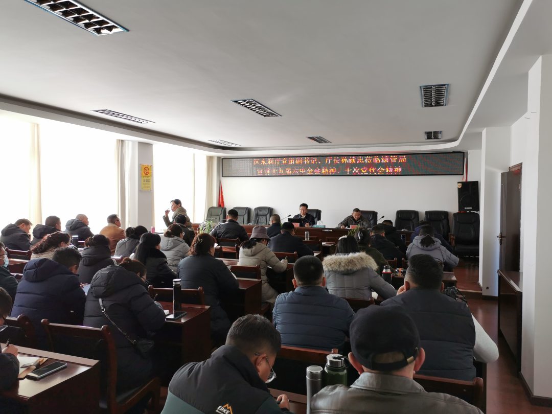 12月8日,自治区水利厅党组副书记、厅长孙献忠为厅系统干部职工宣讲党的十九届六中全会精神和自治区第十次党代会精神。