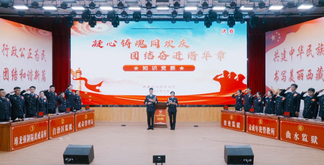 本次竞赛,题目内容重点突出习近平总书记出席西藏自治区成立60周年庆祝活动听取自治区党委和政府工作汇报时的重要讲话精神,围绕习近平总书记关于加强和改进民族工作的重要思想,《中华人民共和国民族区域自治法》《西藏自治区民族团结进步模范区创建条例》等法律法规,以及我国各民族的历史文化、风俗习惯,全面检验参赛人员的政策理论功底和知识储备。比赛中,各代表队参赛选手精神饱满、应答如流,在抢答环节反应迅速、默契配合,充分展现司法行政干警职工扎实的知识积累与良好的精神面貌。