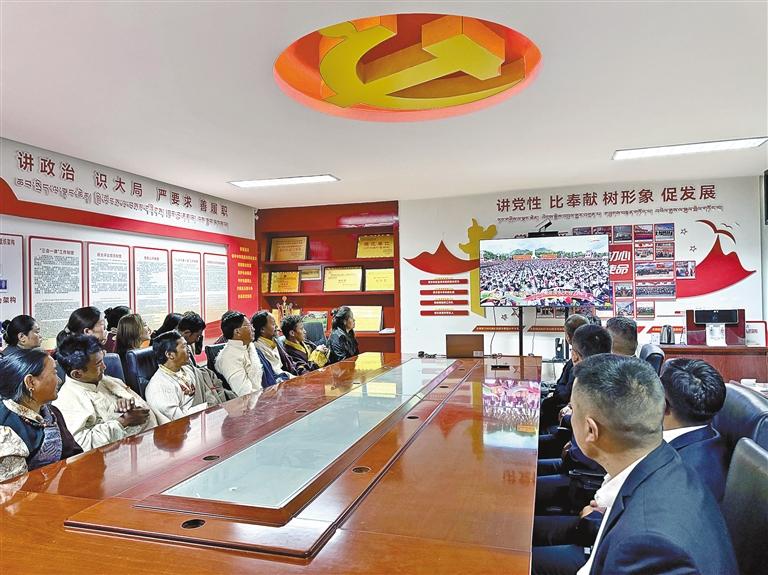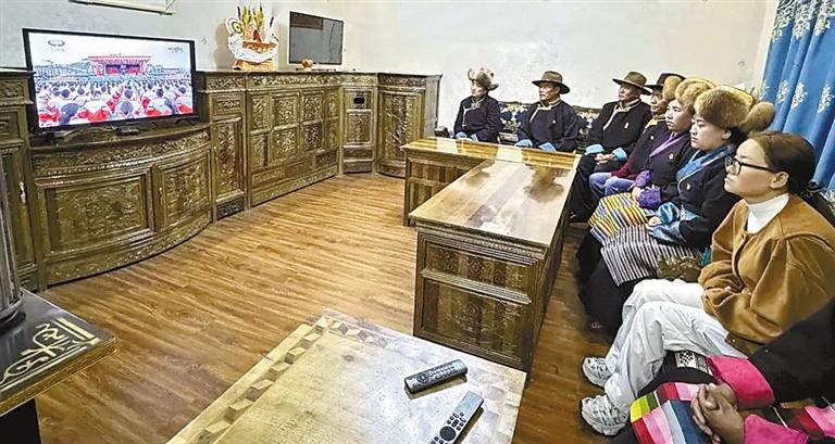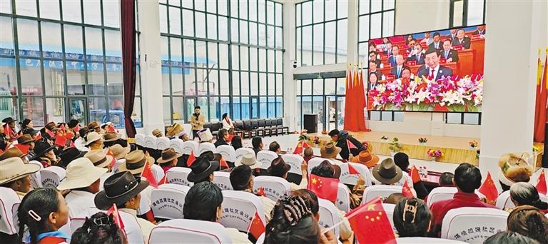 海拔5373米的浪卡子县普玛江塘乡干部群众通过多种形式收听收看大会盛况,共同见证这一重要的历史时刻。普玛江塘乡党委书记多吉旺久说:“60年来,普玛江塘乡从过去靠天吃饭到如今靠科技吃饭,巨大的变化离不开党中央的亲切关怀和党的民族政策,我们一定铭记党的恩情,永远听党话、感党恩、跟党走。”