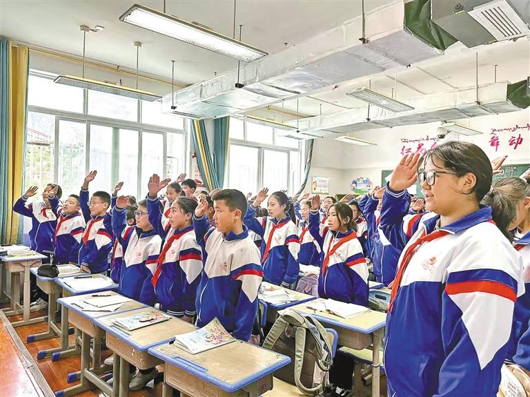 昌都市实验小学六年级五班学生加永洛丁在教室里向记者分享了自己的感受:“看到电视里的画面,我特别骄傲。听爷爷讲,旧西藏生活很苦,现在我们有这么好的学校,生活也越来越好,我要努力学习,让西藏变得更美丽!”