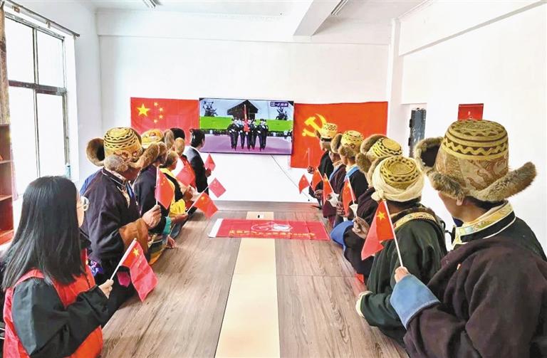 山南市隆子县玉麦乡干部群众、派出所民警等来到爱国守边先进事迹展馆,集中收听收看了庆祝大会直播。玉麦村的大学生尼玛次仁说:“当看到山南彩车上‘家是玉麦,国是中国’的标语时,我感到非常骄傲与自豪。作为新时代青年,我要传承好发扬好爱国守边精神,时刻准备着到祖国和人民最需要的地方去。”