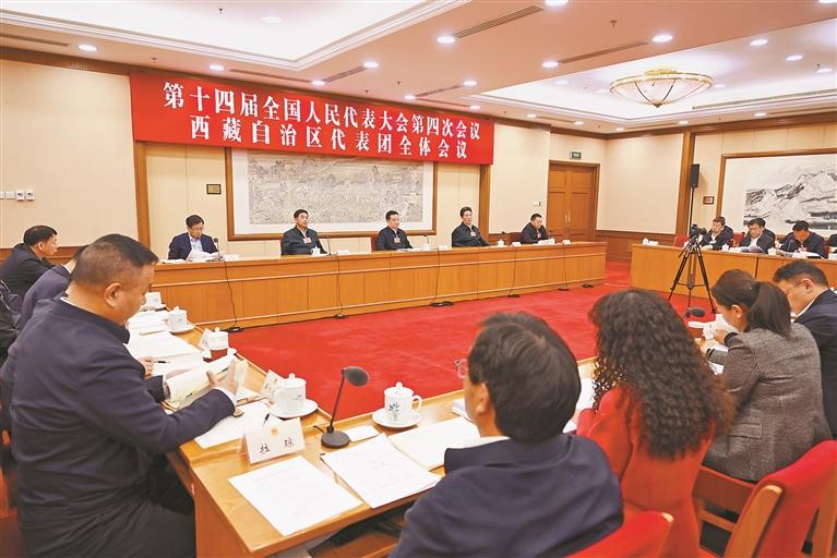 西藏代表团举行全体会议 传达学习习近平总书记重要讲话精神 继续审议政府工作报告 审查计划报告和草案、预算报告和草案