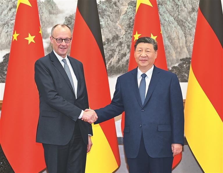 二是要做开放互利的创新伙伴。德国政府在技术、创新、数字等领域提出新发展战略,同中国“十五五”时期智能化、绿色化、融合化发展方向高度契合。双方应加强发展战略对接,支持两国人才、知识、技术双向流动,促进人工智能等前沿领域对话合作。双方要正确把握竞争和合作的关系,寻求互利共赢的合作路径,共同维护产业链供应链稳定畅通。