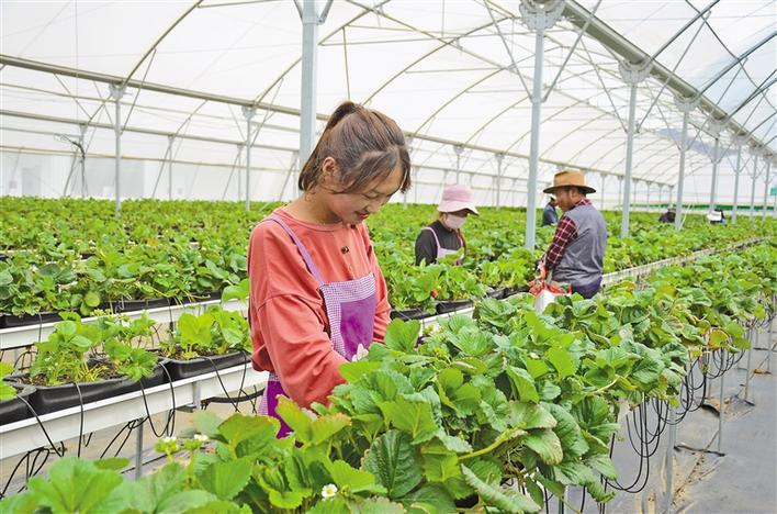 现代休闲农业已成为助力山南市农旅发展、乡村振兴的新兴增长点。群众在扎囊县桑耶镇现代温室高架草莓园内劳作。