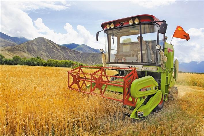 以大型收割机为代表的现代化机械设备在山南日益普及,农牧业连年实现丰产增收。